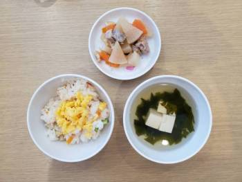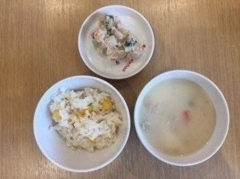 クリームシチュー・コーンピラフ・大豆の胡麻マヨサラダ