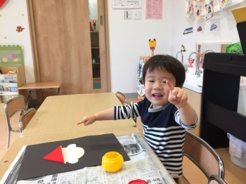 のりを手に付けて貼るのとっても上手になってきたね✨