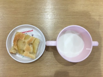 きらきら組は朝おやつのリンゴを触ったり香りをかいでみました☆
