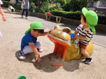 公園に行く途中に、手作りおもちゃで遊ばせてくださる