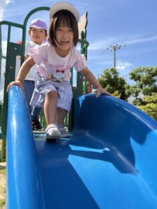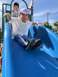 「涼しくなったから滑り台も滑れるようになった~♪」とここでも季節の変化を感じます😊