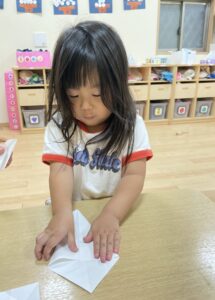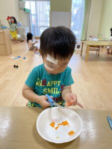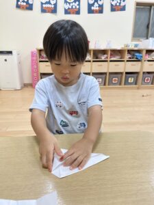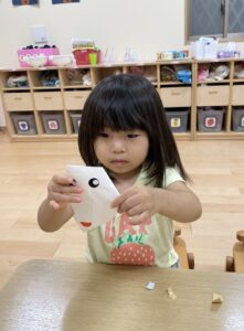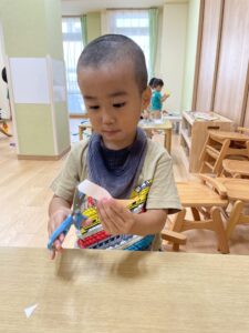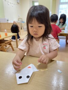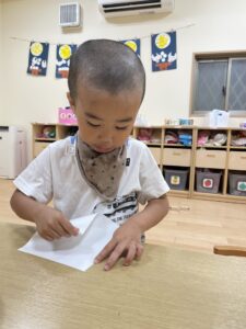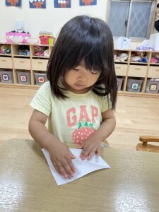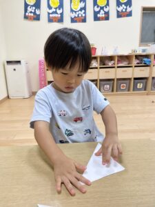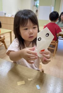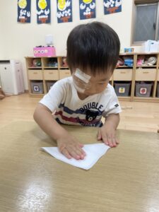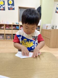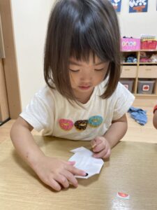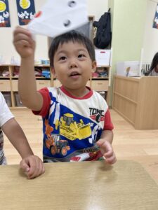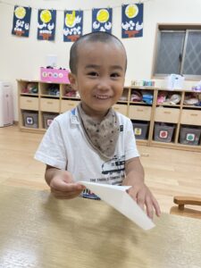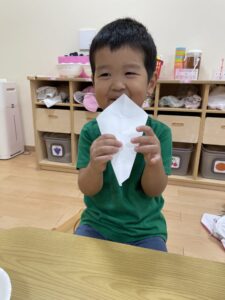 切れた折り紙を見るととっても嬉しそうな笑顔がたくさん見られました