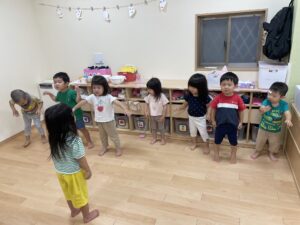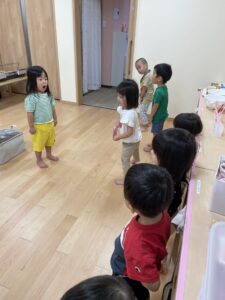 朝の歌は前に立つお当番さんと一緒に歌いました🎵