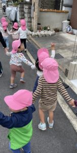 ちょっぴり長い道のりですが、お友だちと手を繋いで最後まで歩きましたよ