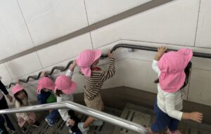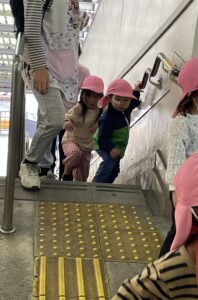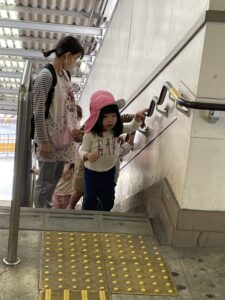 手すりをしっかり持って改札口へ