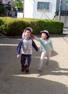「一緒に鬼ごっこしよう~!」と誘い合い早速元気いっぱい走り出します!
