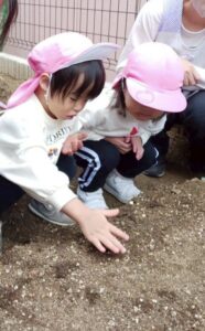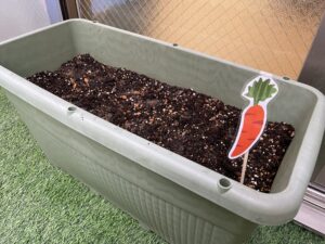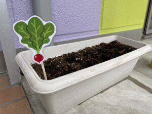 にこにこ組はラディッシュ、わくわく組は人参、きらきら組は小松菜を植えます🌱