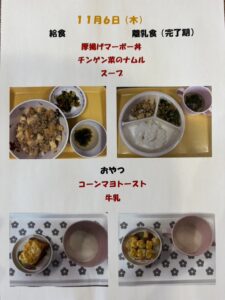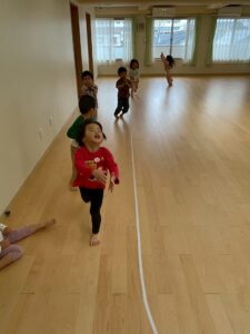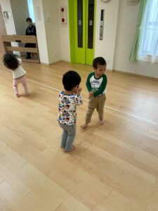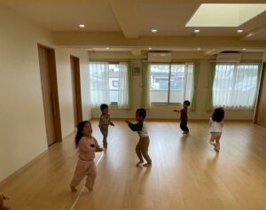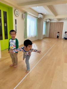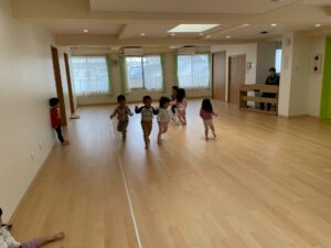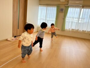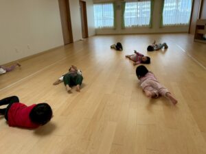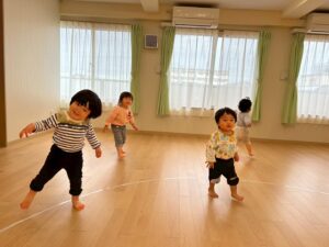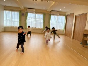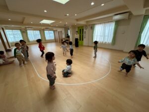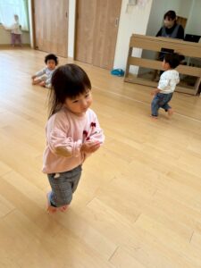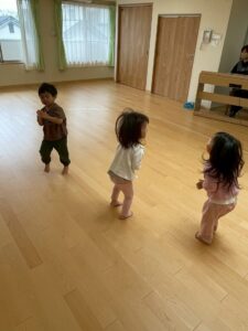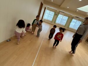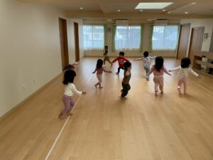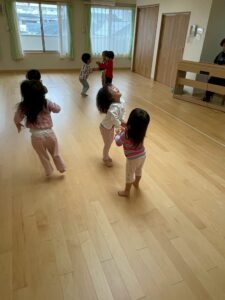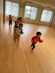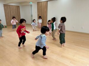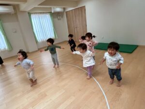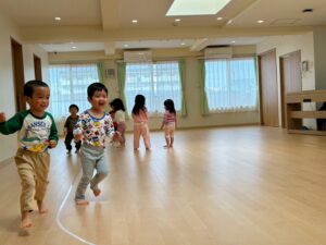 楽しいリズムあそび🎶 2025.11.06 今日は1歳・2歳合同です♪ 「リズムあそび、はじめまーす!」 「いくぞー!!」 『うさぎ』 『こうま』 ピアノの音が1オクターブ変わったり、テンポが早くなったのを聞き分けて自然に身体が動きます^^ 『どんぐり』 『とんぼ』 さぁ、どこに飛んでいこうかな~♪ 『汽車』 シュッシュッシュッ ポポー! 『めだか』 とっても元気なわくわく・きらきら組♪ 風邪なんて吹き飛ばしちゃうよ~✌ 〇給食・おやつ〇