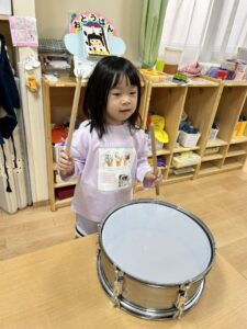 10月の後半に様々な楽器を鳴らして楽器遊びをしました♪