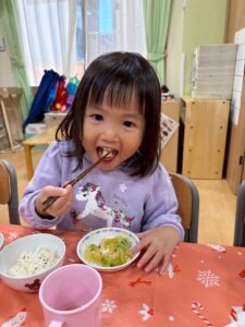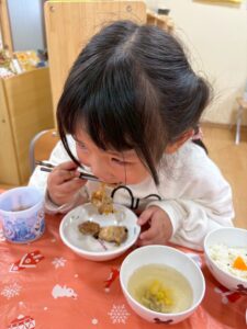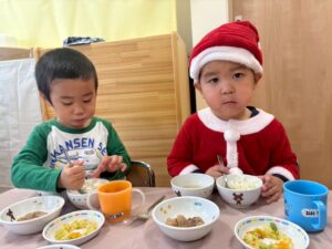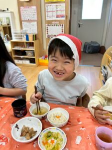 クリスマスの給食やおやつに大喜びの子どもたちでした😊