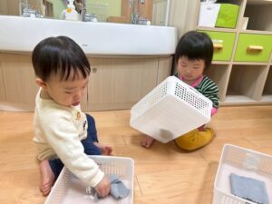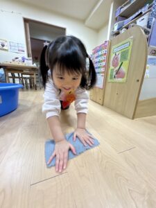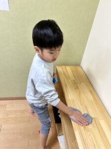 自分たちの棚以外も、いつも遊んでいるおもちゃまで綺麗に拭いてくれていましたよ✨