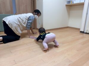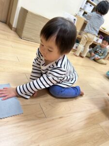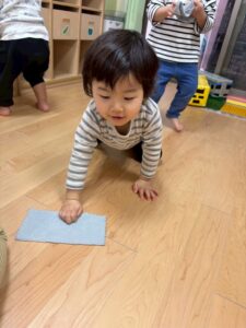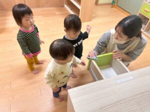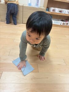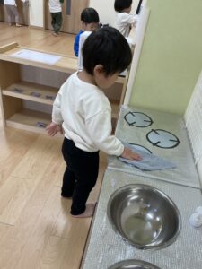 保育者が棚を掃除をしている様子をじっと見たあと、一緒に手伝ってくれましたよ♪