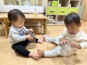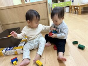 同じ空間にいながらそれぞれの遊びを楽しむ中で、少しずつ「どうぞ」と関わりあう場面もあります😊