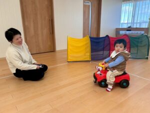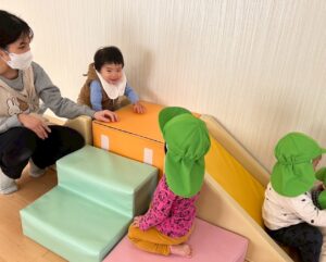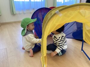 地域のお友だちは、はじめお母さんのそばで遊んでいたのが少しずつ雰囲気にも慣れてきて興味のある場所へどんどん進んで遊んでいました!!
