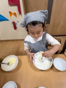 子どもたちの興味のあることから食育を行ない、大変だけど自分たちで作るともっと美味しくなるということを知り、作る・食べる意欲に繋げられたかなと思います。