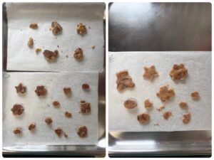 ⑥クッキングシートを鉄板に並べて…