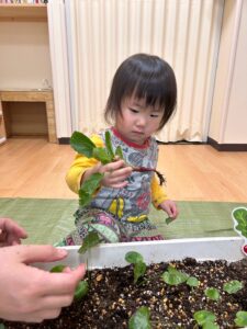 最初は恐るおそるプランターに近づいていましたが、土から抜いた瞬間は楽しそうな表情をしていました。