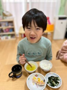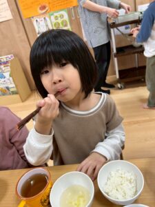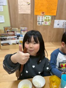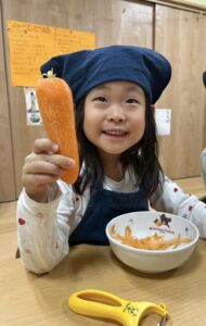 給食の時間には、「スープ大盛りにして!」「野菜おかわりする!」「キャベツ美味しい!」という声がどんどん上がり、自分たちで調理したことが食べる意欲に繋がったようでした。