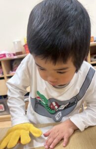 『次のお友だちに渡してね』と伝えると、みんな隣にいるお友だちに順番に渡してくれていました😊