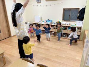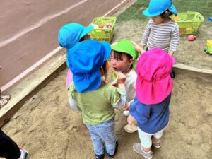 今日はとても良いお天気だったのでわくわく組のお友だちと一緒に園庭で遊びました🌞