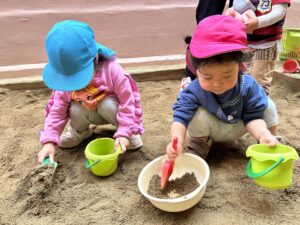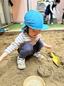 お砂場ではごちそうを作ったり車を走らせたりと、それぞれ好きな遊びを楽しみました♪