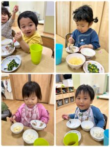たくさん遊んだあとはみんなの大好きな給食の時間🍴