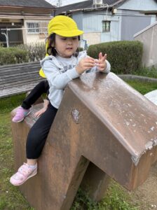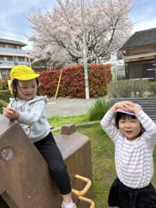 公園では「桜の花びらがいっぱい落ちてる!」「(近くの)お家の屋根の上にいっぱい花びらがのってる!」と嬉しそうに桜の花びら拾い✨