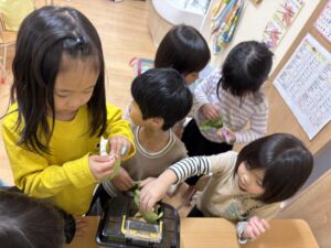 それをみていたたいよう組の子どもたちも興味津々✨