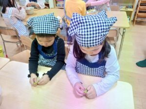 難しい筋取りも慣れてきたらみんなスムーズにできました!