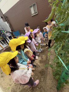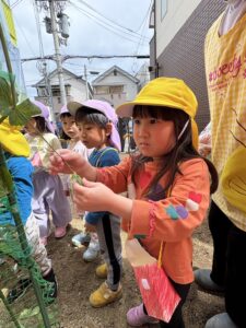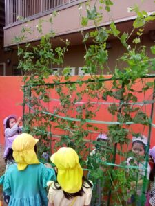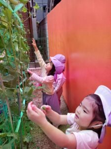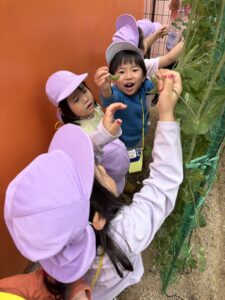 2026.04.23昨日は、にじ・たいよう組でろぉたすファームで栽培したスナップエンドウを収穫しました。