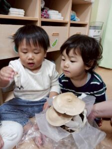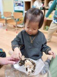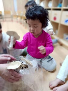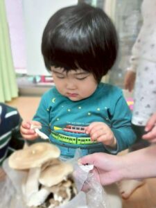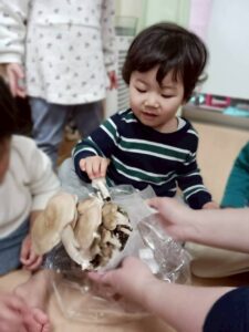 今日はわくわく組で育てていたしめじを収穫し食べてみました🍽️