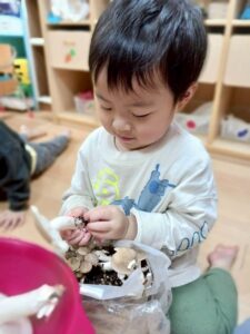 今、わくわく組ではにんじんとしめじを栽培中🌱