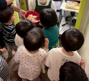 干し柿作りを体験したことがあるお友だちが、初めて体験するお友だちに「明日はまかせて✨」「こうやるんだよ!」「やったことあるから教えてあげる!」など、積極的に手伝って協力している姿が見られました(*^^*)
