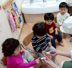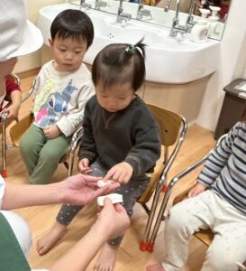 いつも通り保育士と確認していると、今日はみんなより小さなお友だちも公園で遊んでいることに気づいた子どもが!