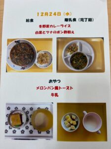 クリスマスの給食やおやつに大喜びの子どもたちでした😊