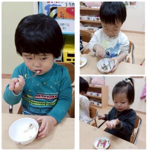 きのこが苦手な子も、一口だけ挑戦してみようという姿が見られました。