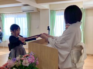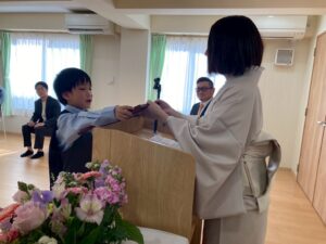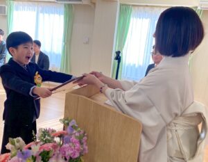 一人ひとり卒園証書を受け取り、大好きなお母さんに「ありがとう」の気持ちを伝えました。