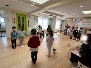 『次のお友だちに渡してね』と伝えると、みんな隣にいるお友だちに順番に渡してくれていました😊