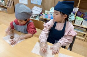 細長い形、丸い形、みんなそれぞれ違う形ができて見比べて楽しむ子どもたち♪