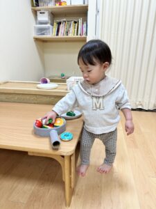 同じ空間にいながらそれぞれの遊びを楽しむ中で、少しずつ「どうぞ」と関わりあう場面もあります😊