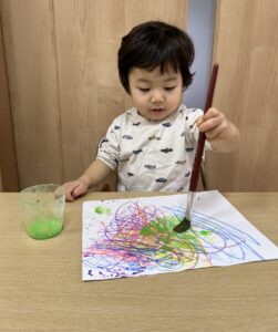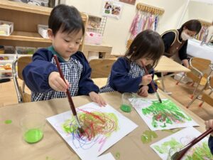 自分で絵の具をつけるのも楽しい♪