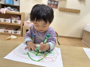 自由遊びの中で様々な組み合わせを楽しみながら製作を楽しんでいる子どもたちです♪