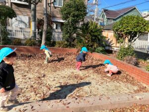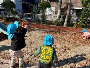 全身を使って走ったり登ったり、落ち葉の感触を手や足、目や耳であじわいました!